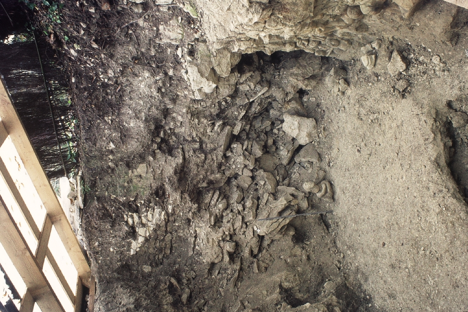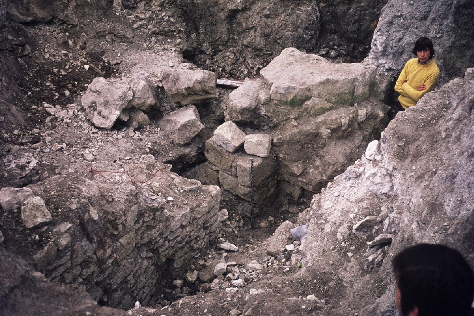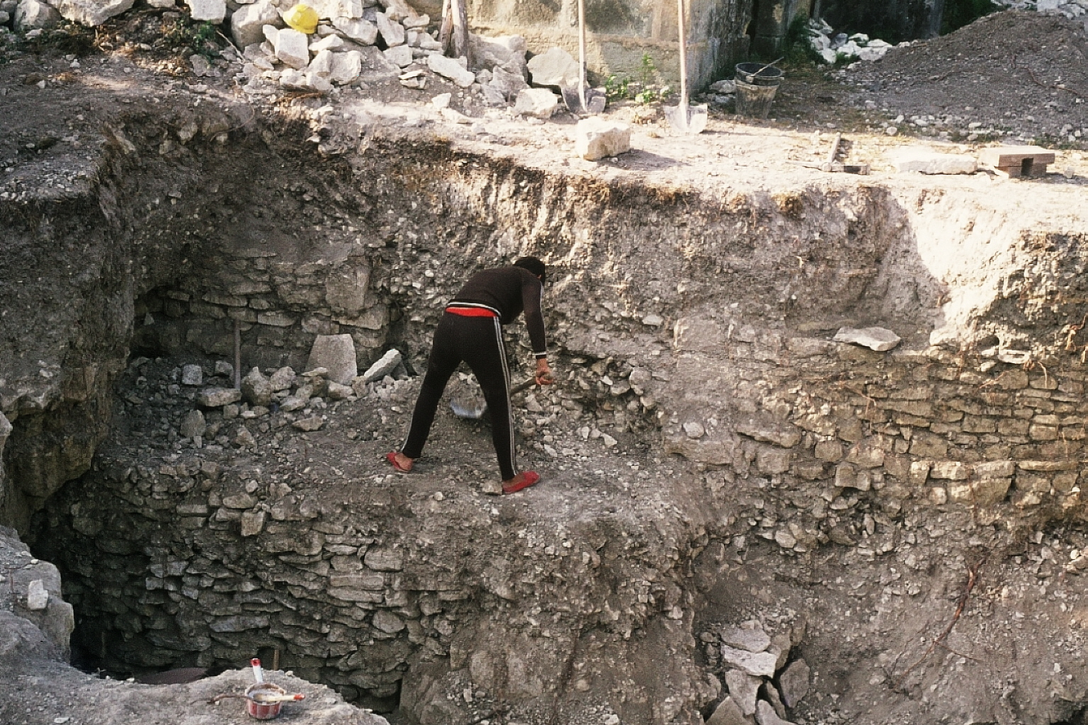 excavation en cours- au moins 2 niveaux de murs en petit appareil irrégulier
