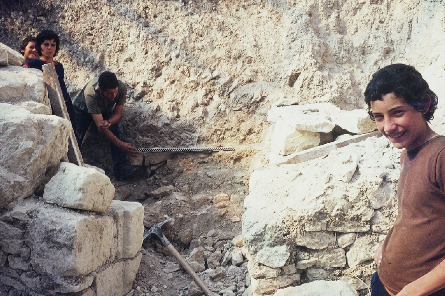 fouilles en cours - 4 fouilleurs - murs de cloisement avec une ouverture