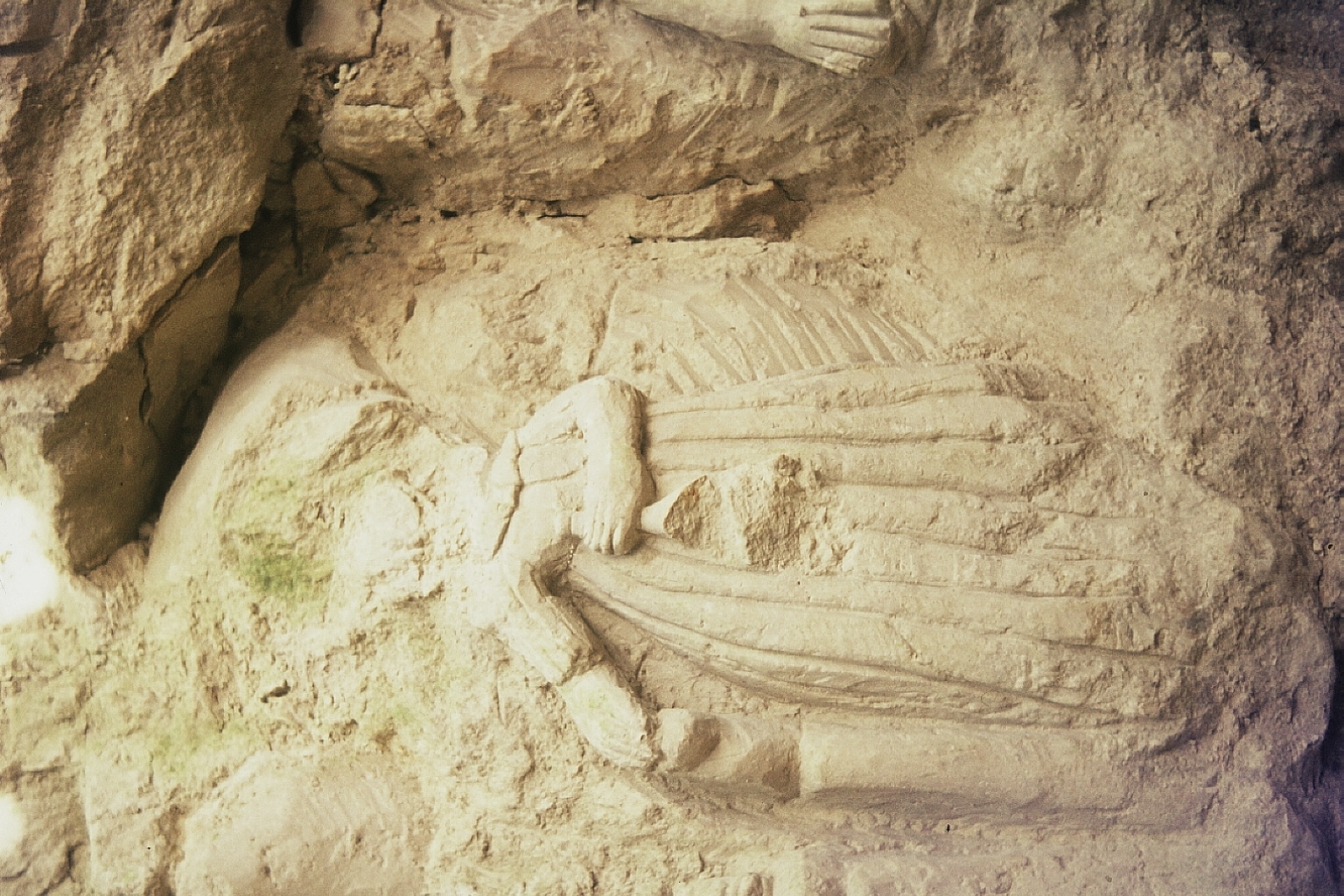 sous le toit en plastique; mur dont le sommet parait neuf avec un linteau d'une seule pièce