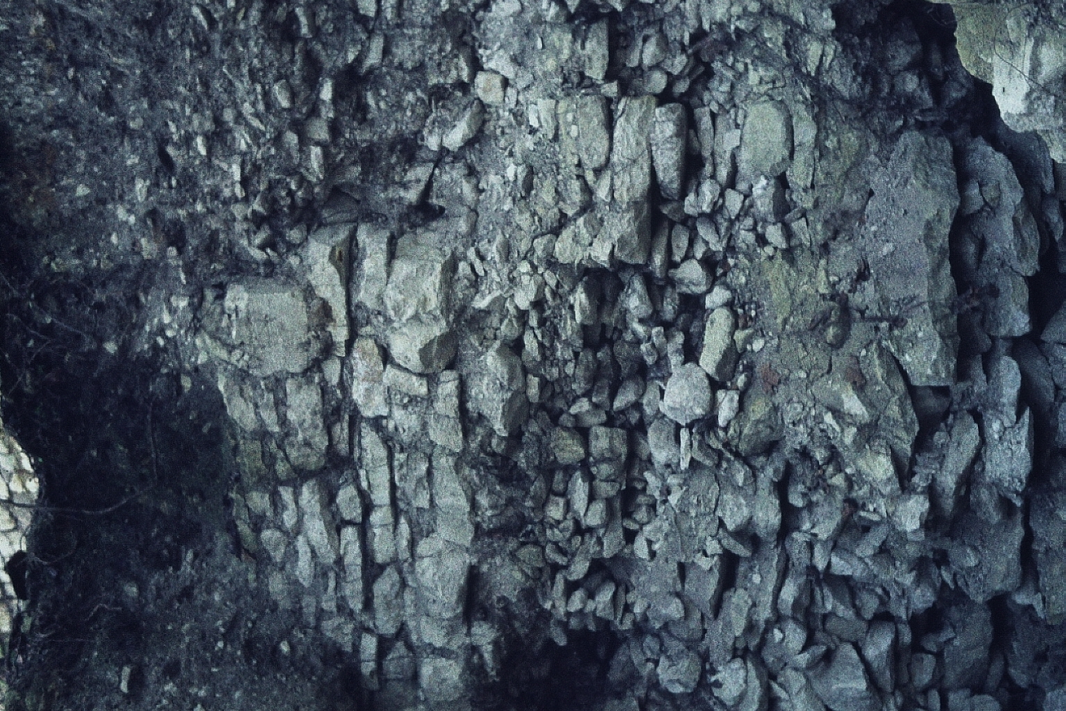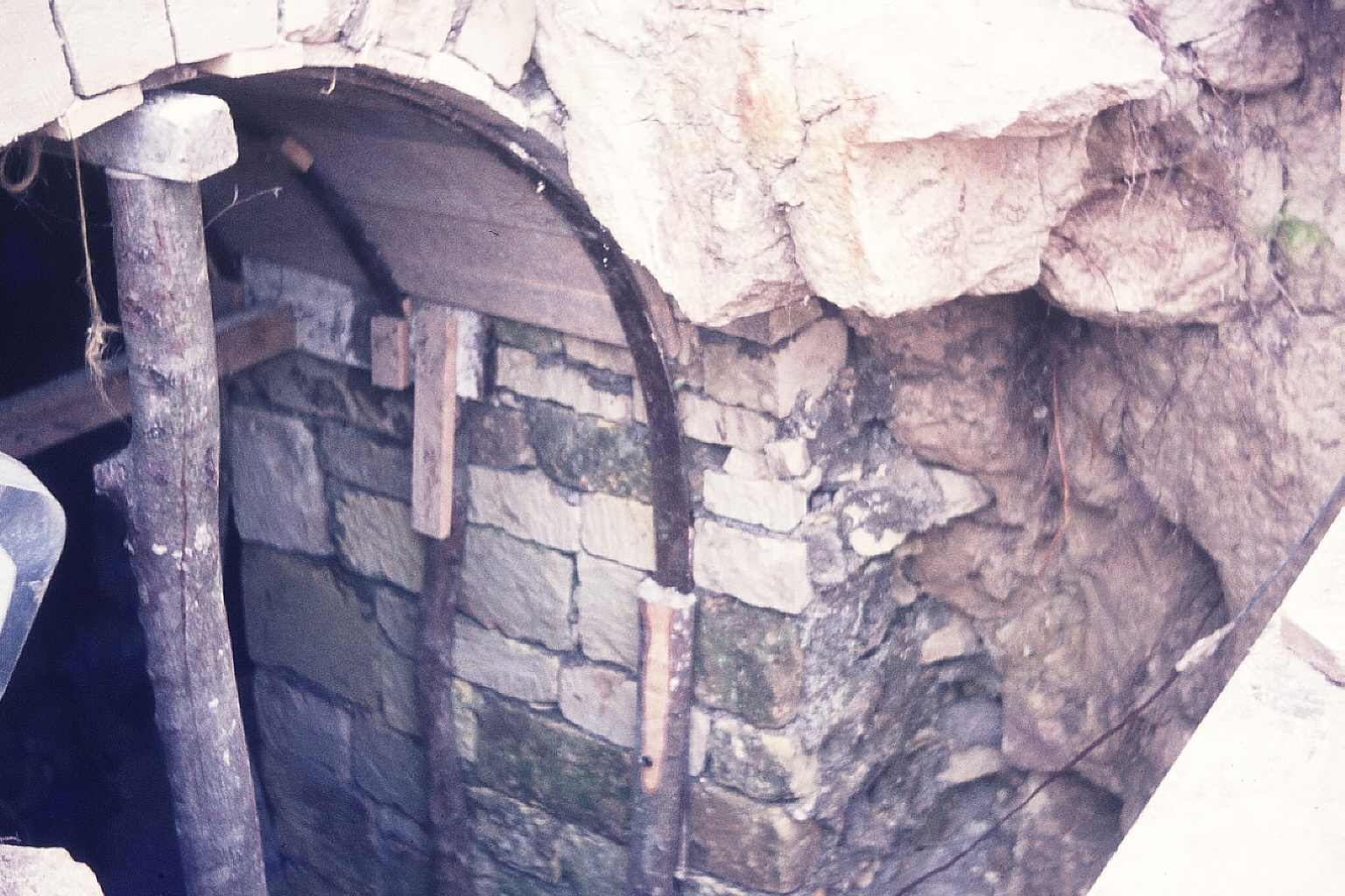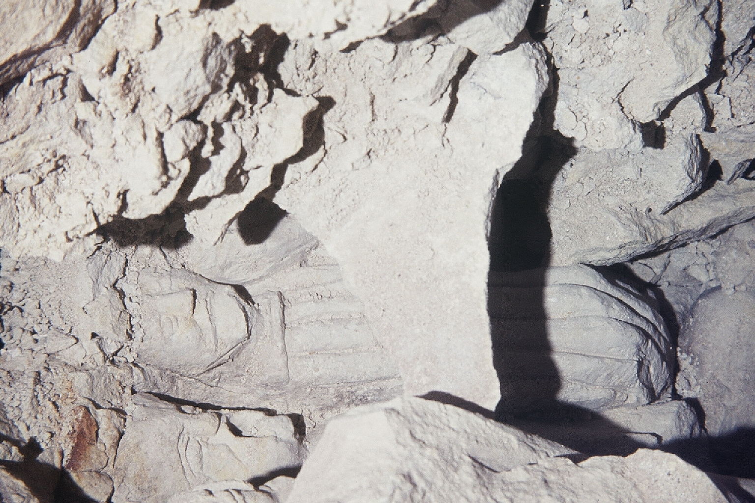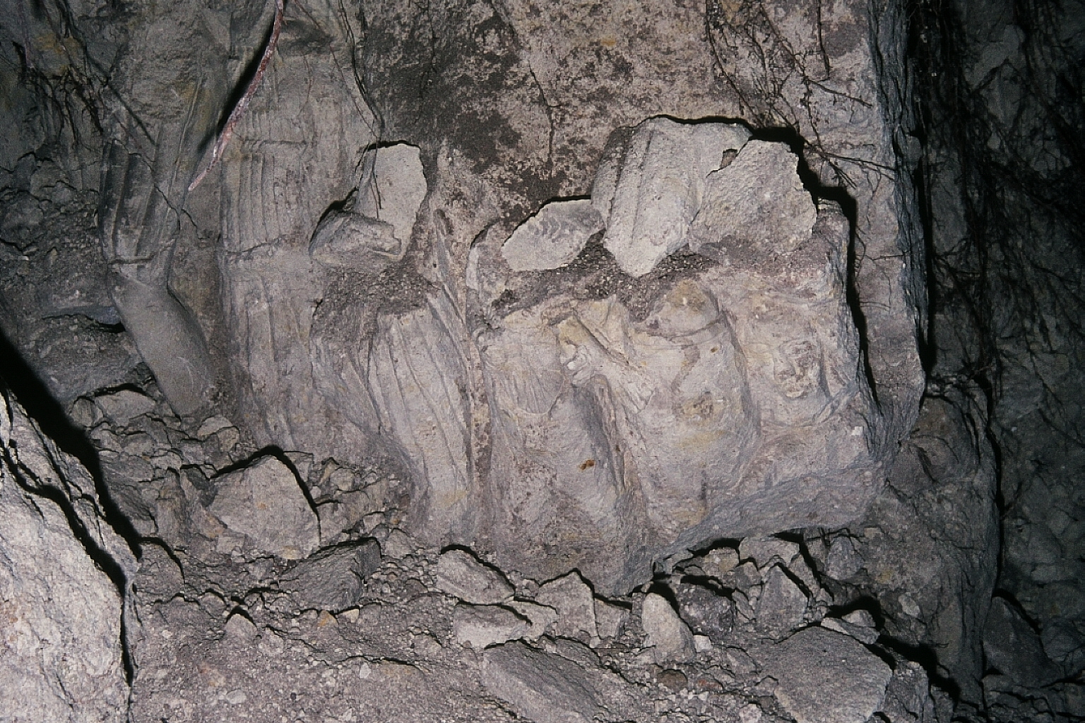 le trio en cours de dégagement; le mur à droite est bien visible