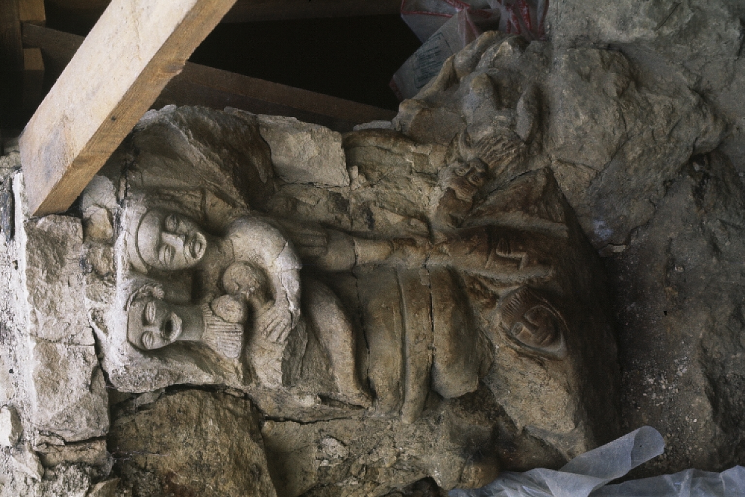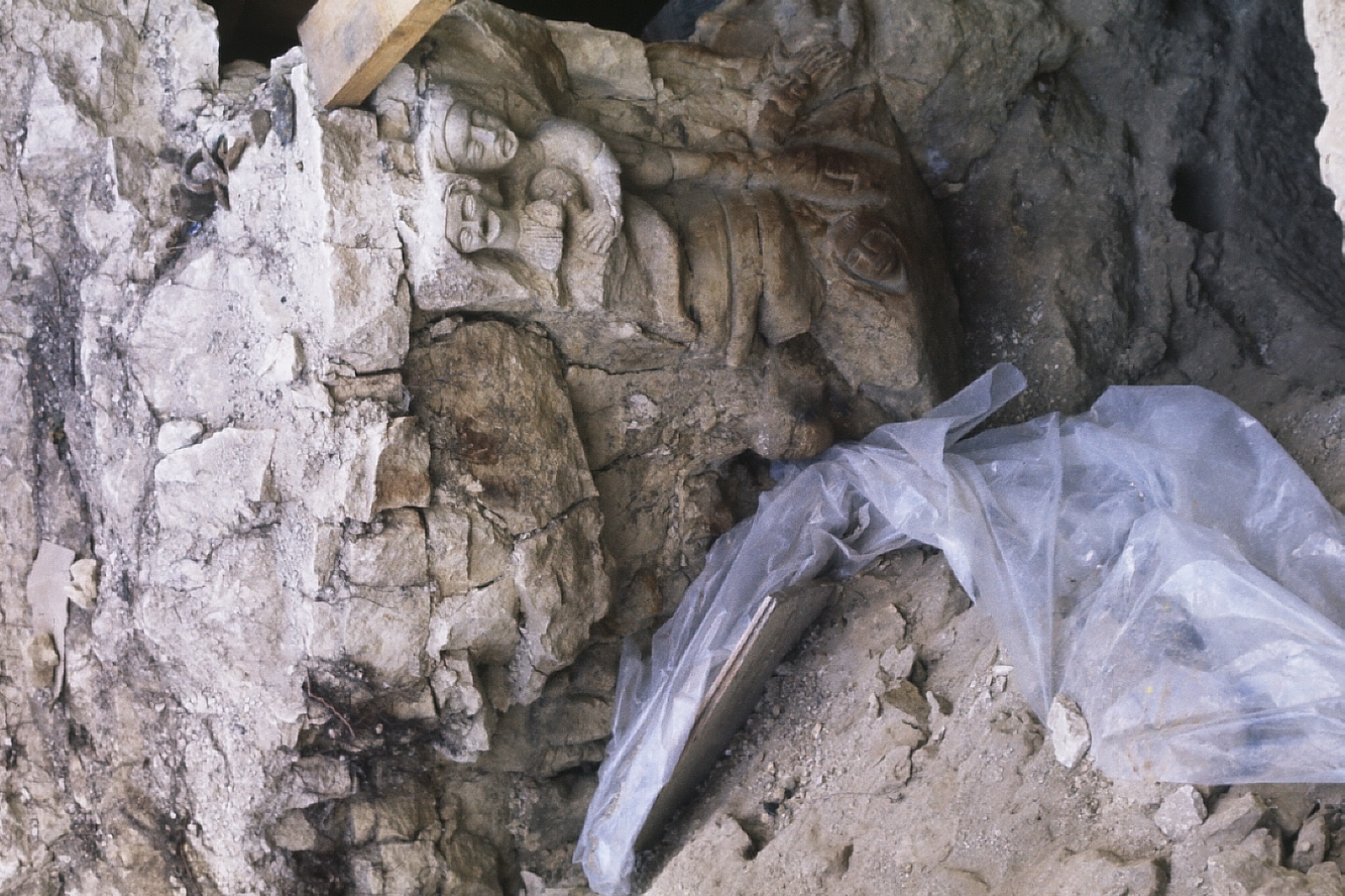 panneau B en cours de déblaiement - moitié supérieure de personnages seulement