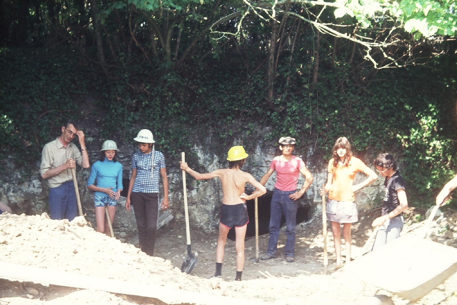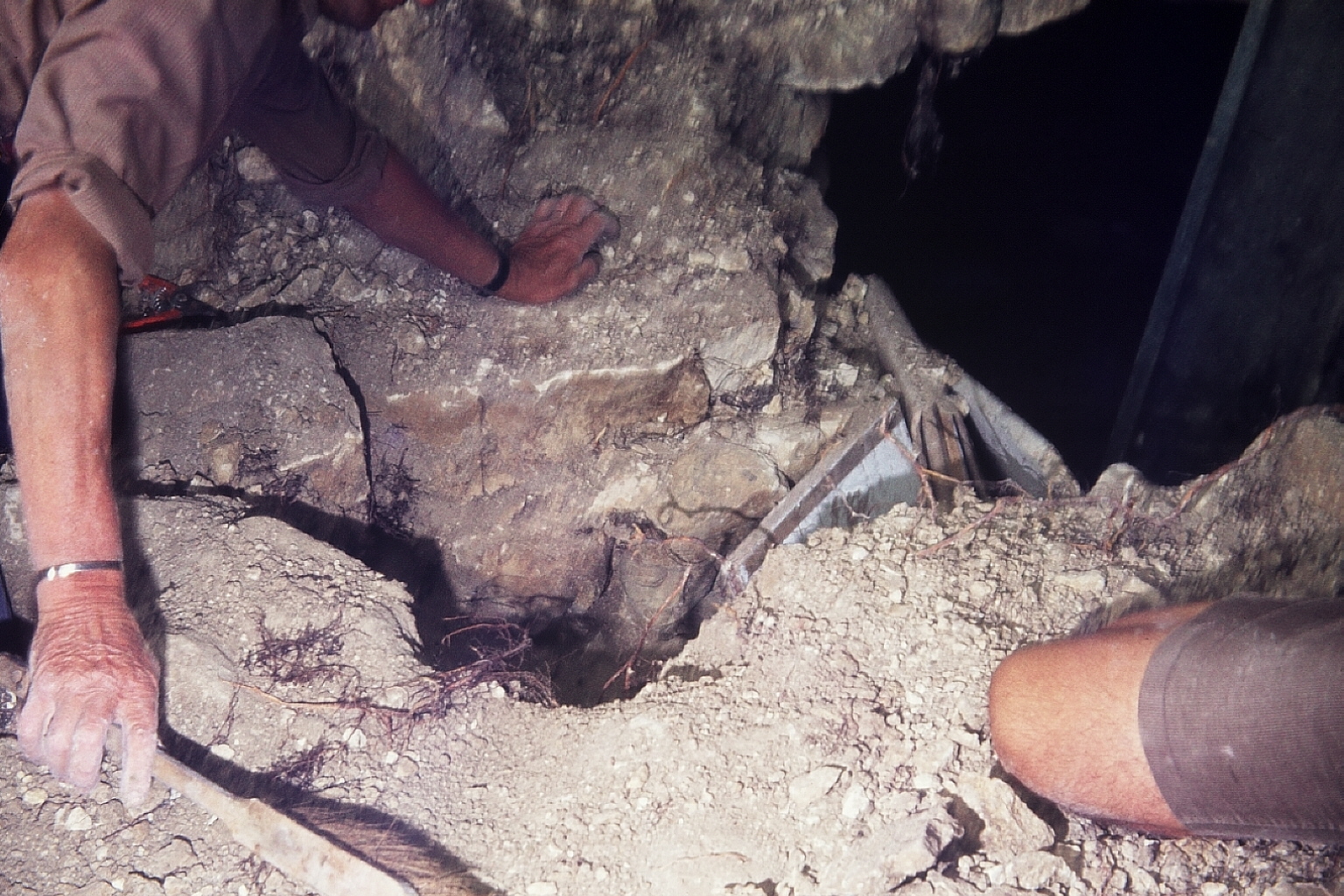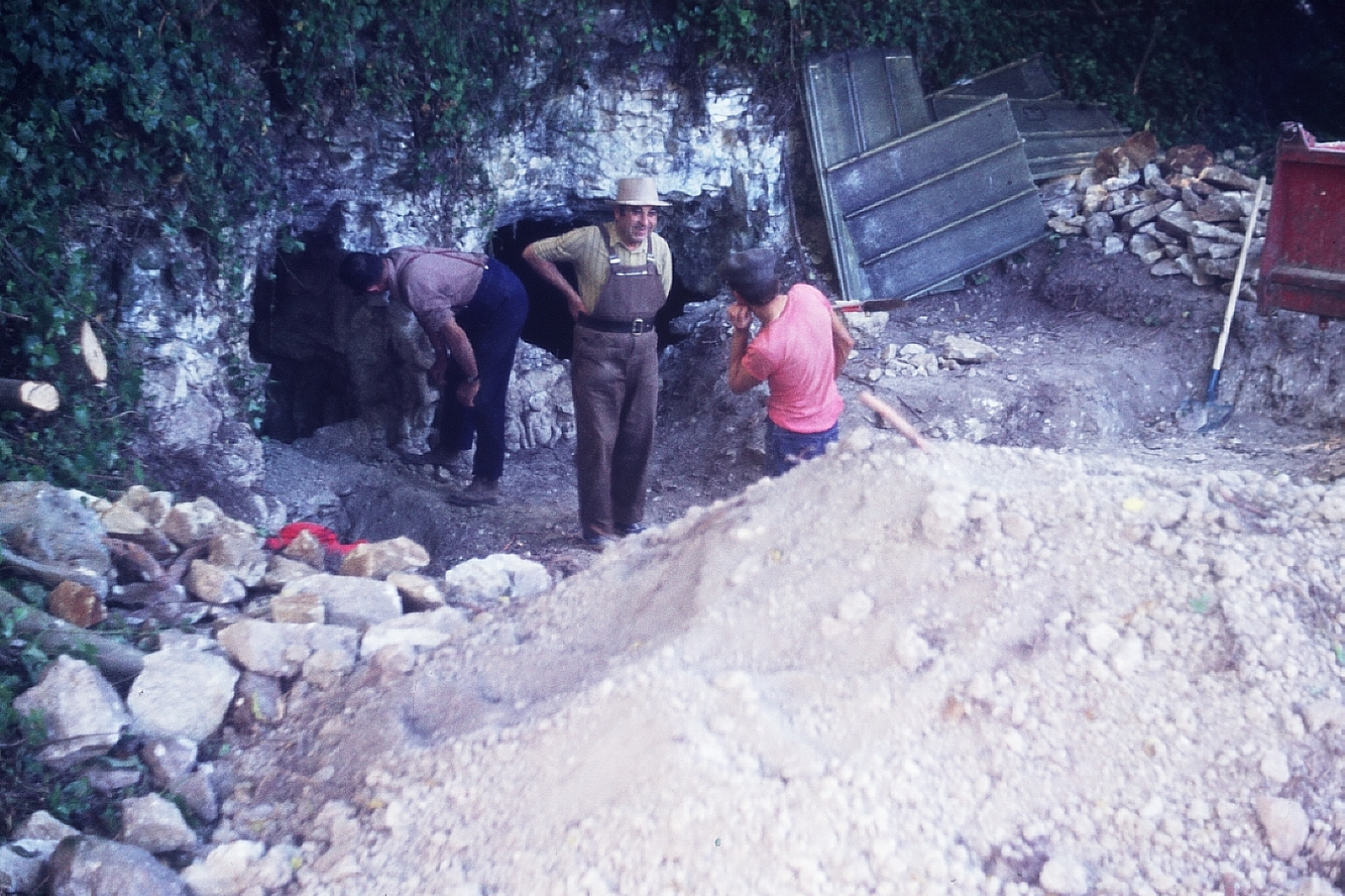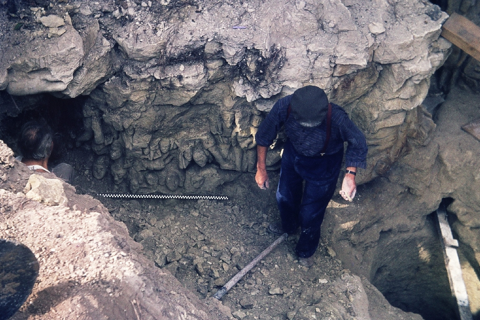 3 fouilleurs - 2 cavités dans la paroi en arrière plan - peut-être une partie de panneau B entre les 2