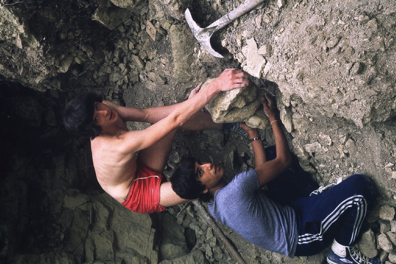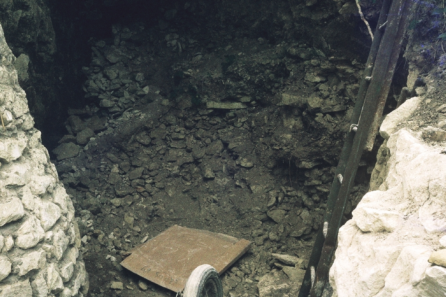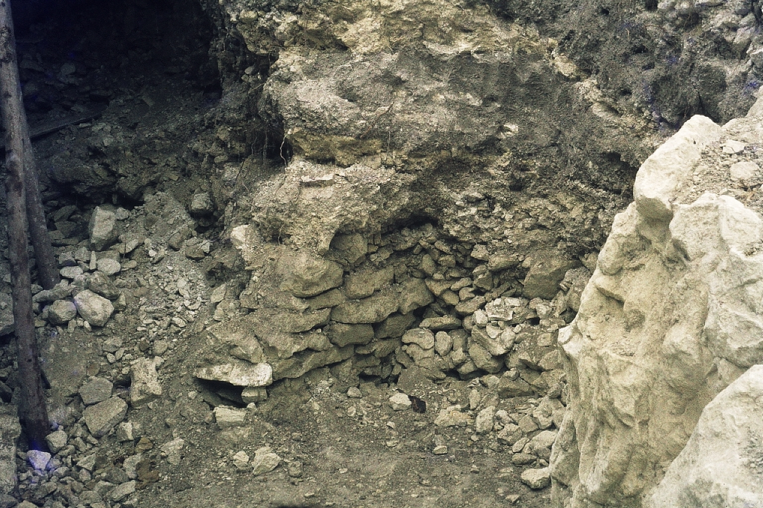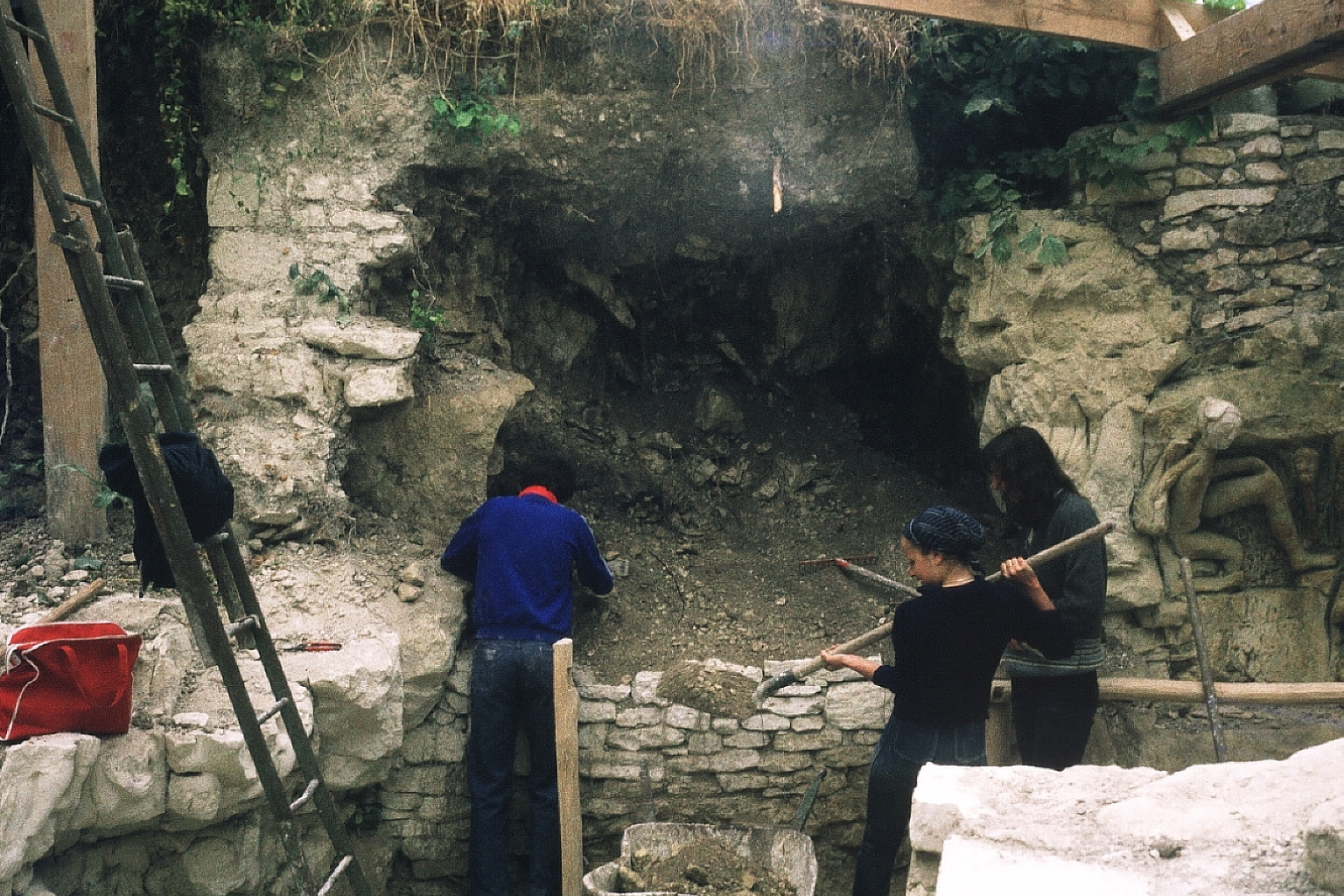 un éboulement en cours de dégagement - des silhouettes de sculptures non identifées