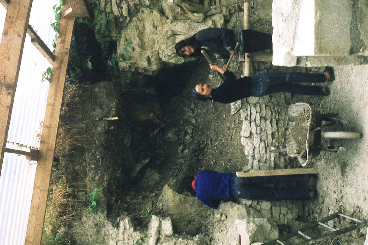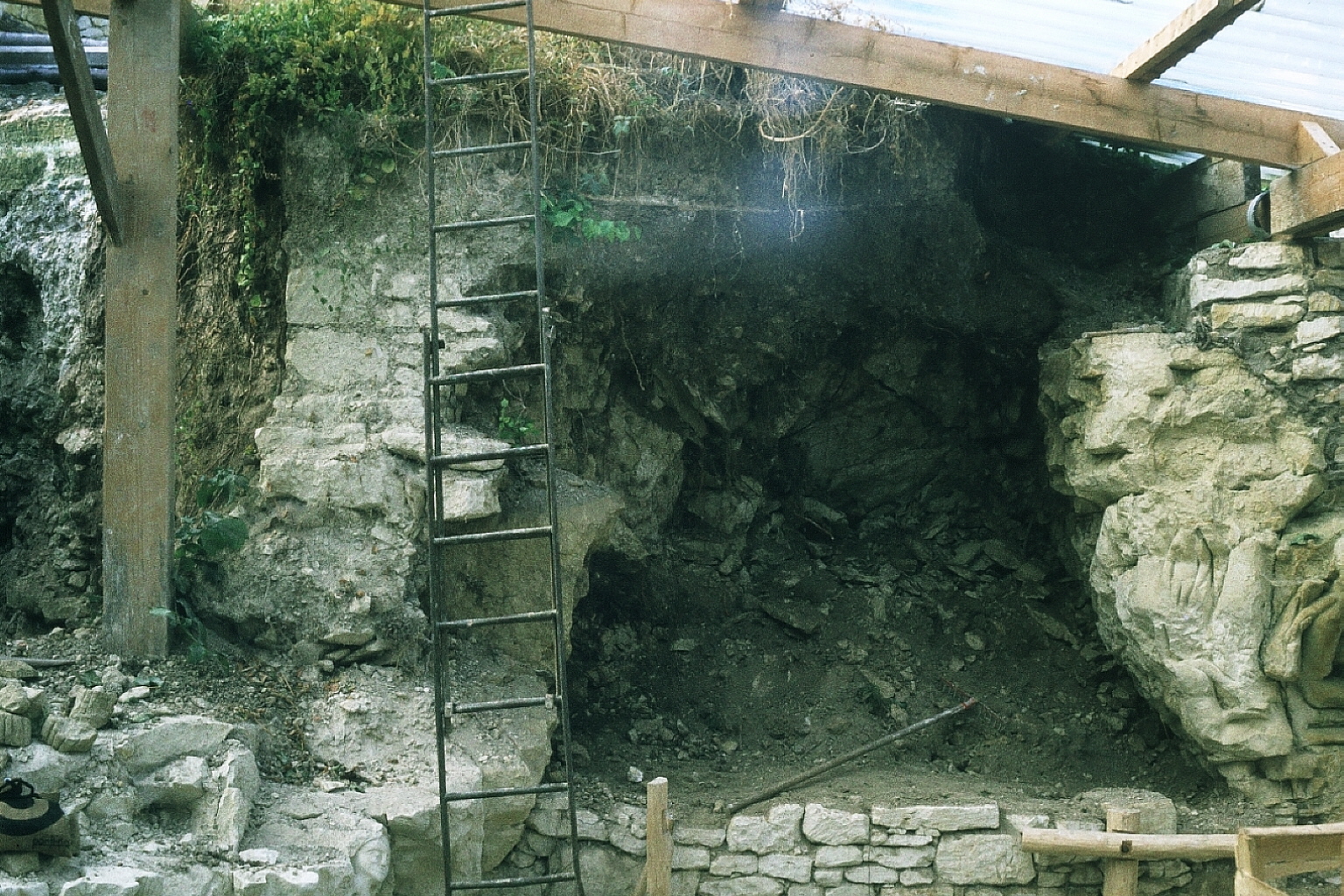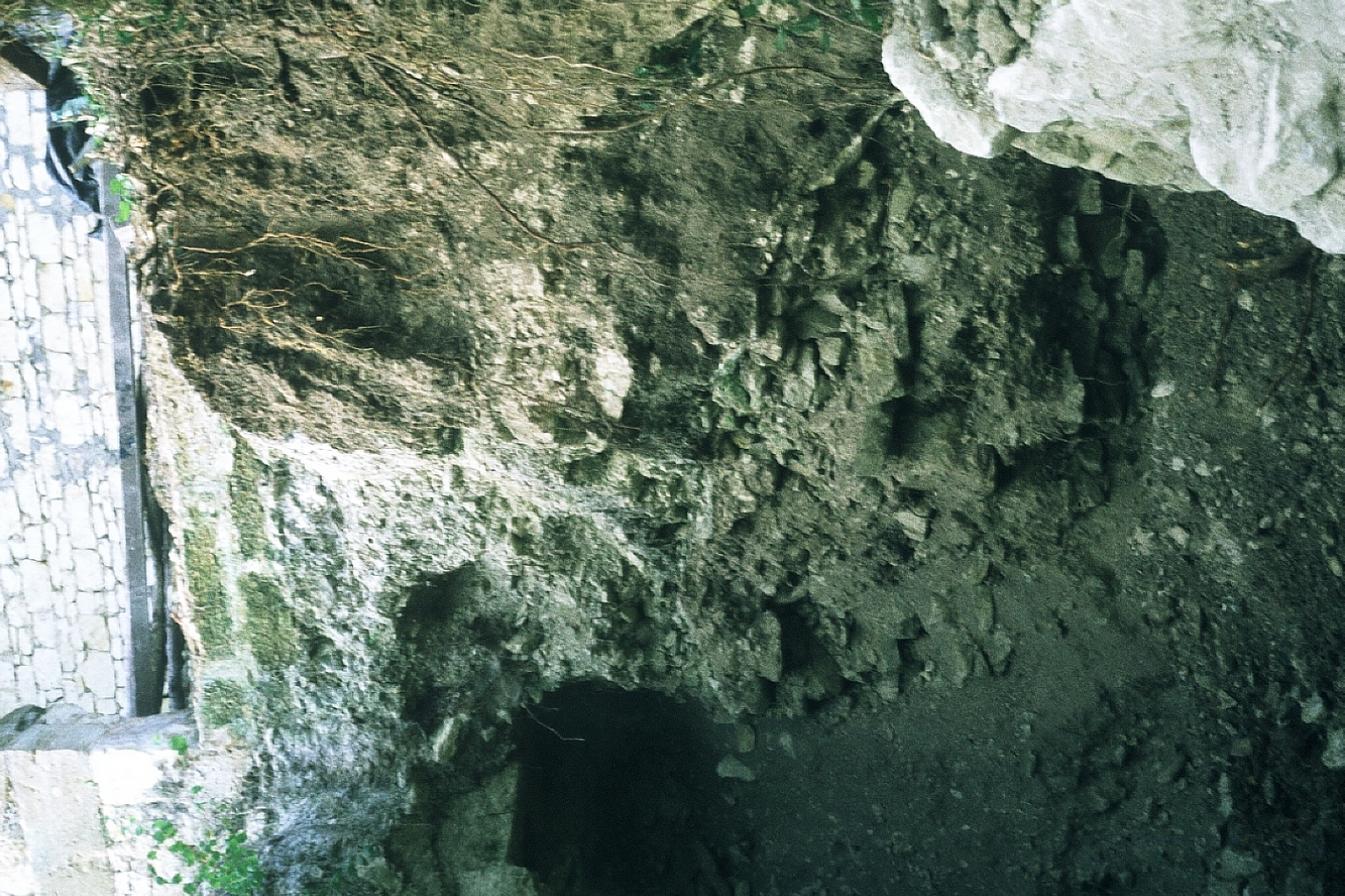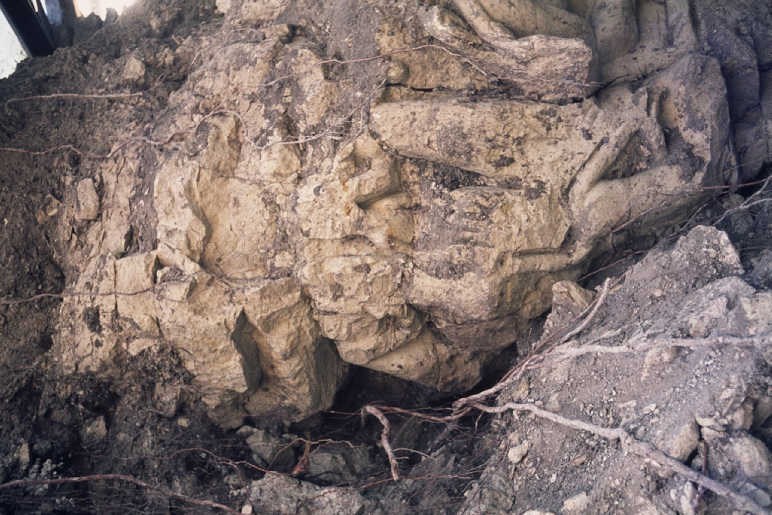un éboulement en cours de dégagement - des silhouettes de sculptures non identifées