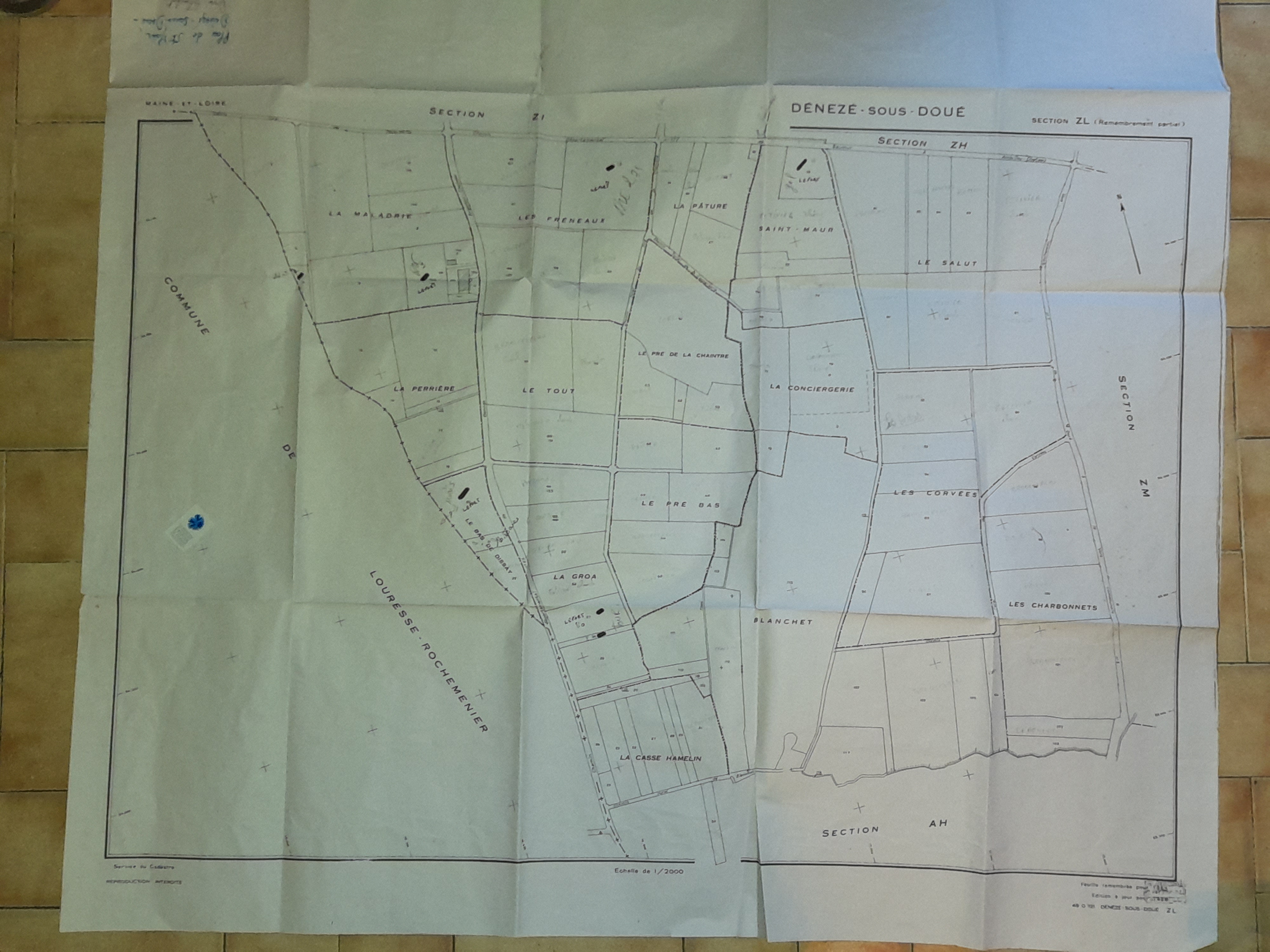 "plan de St Maur, Dénezé-sous-Doué - Dissé - Blanchet - Les Corvées - Le Salut -partie de cadastre Ouest Dénezé