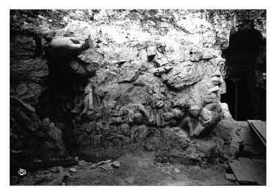 panneau C en entier - la pieta et à gauche le personnage C 61 (date 1740) à la tête recollée