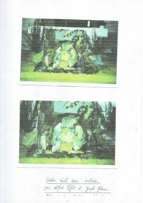 photocopies couleur de mauvaise qualité de photos de la crêche de Noël 2000 réalisée par Alfred Lefort et Joseph Métivier