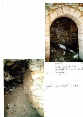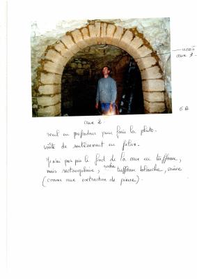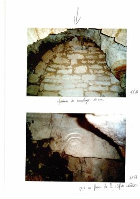 découverte de croix dessinées près de l'établi du prieuré par E. Lefort "croix très longues avec des bases en forme de dés - dessins fait par Eliane