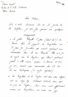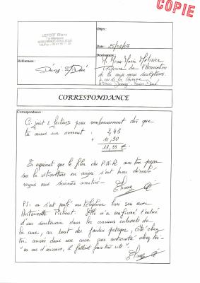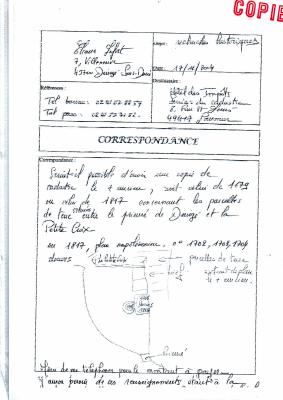 Fax de E. Lefort à l'hotel des impôts de saumur pour avoir copie du cadastre de 1679
