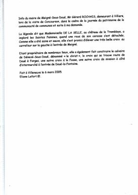 la légende de Mlle de la Selle selon Gérard Rochais maire de Meigné sous Doué - calvaires
