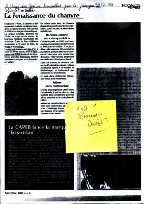 dossier sur la culture du chanvre le Courrier de l'Ouest novembre 2009