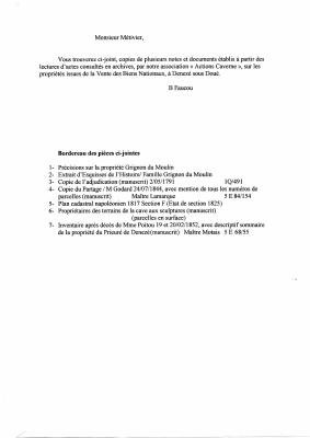 de Bernard Faucou au maire Dénezé - nombreux documents sur le parcellaire de la chapelle et du prieuré et la trasmission à partir de 1791