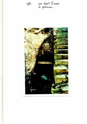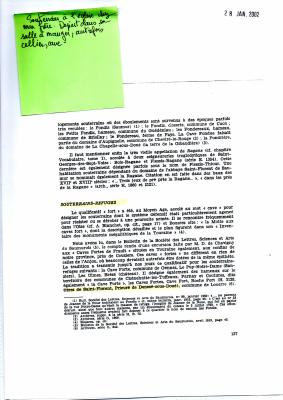 photocopie d'un livre (Fraysse ?) chapitre sur les souterrrains refuge + note manuscrite E. Lefort sur post-it "Souterrain à l'église chez mon frère. Départ dabs sa salle à manger, autrefois cellier, …