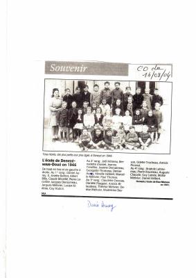photo de classe école Dénezé - année scolaire 1946 - Courrier Ouest du 14/08/2004 - Denise Auroy