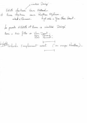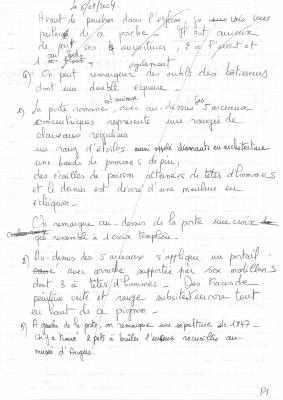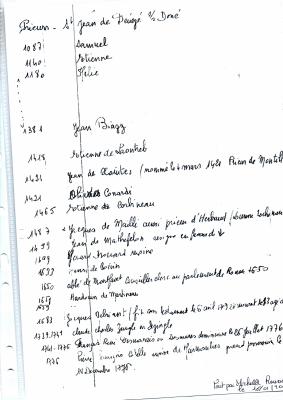 texte manuscrit décrivant l'église Saint Jean-Baptiset de Dénezé - "Monceau de Dénezay en 1602" + description manuscrite d'un itinéraire de 8 km qui part du parking de l'école puis vers l'église puis …