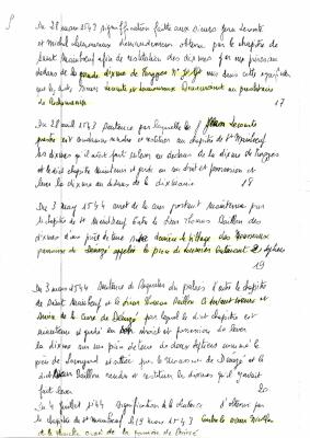 copie manuscrite d'archives (départementales ?) réference "6732". suite de la précédente CL Mousseaux 2-167; Dates citées 1543, 1544 - Nicolas de la PlancheLouis Hilaire, Jacques Bodin capitre de Sain…