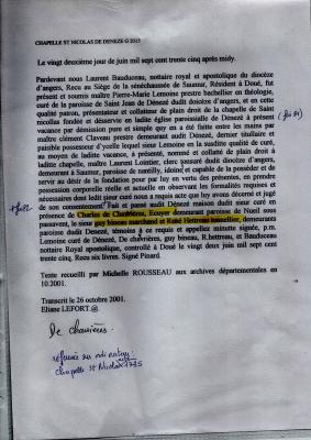 archives départementales cote G 2015 (3 pages transmises par Michelle Rousseau en octobre 2001 à . Lefort) en date du 22/06/1735 - Pierre-Marie Lemoine, Curé de la paroisse de Saint Jean de Dénezé tra…