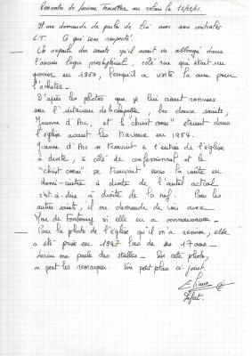 rencontre avec Lucien Treuiller le 1303/2001 - description de l'église (photo de 1947 en doc CL EgPr-111) - à propos des statues dans le presbytère