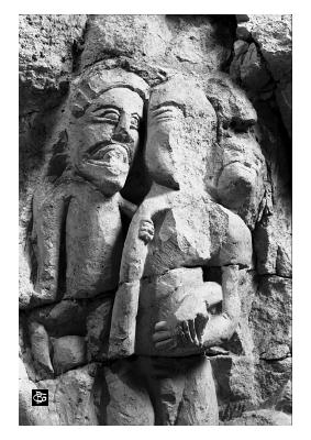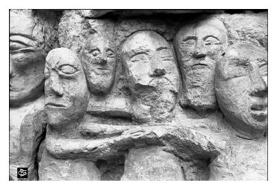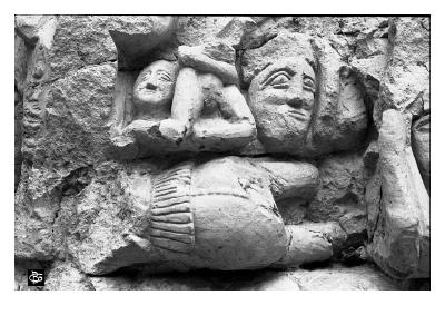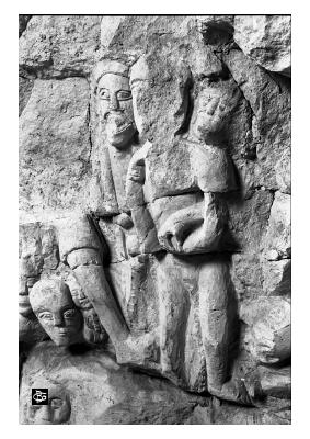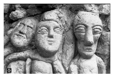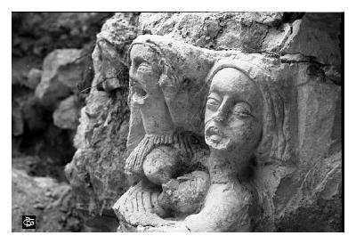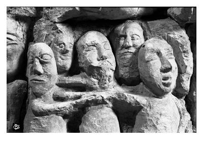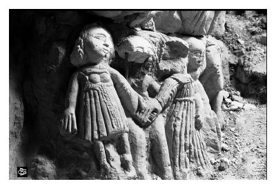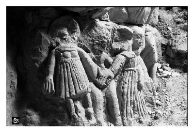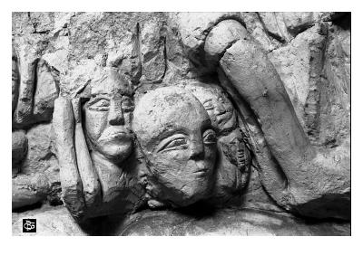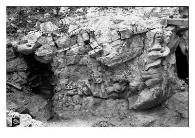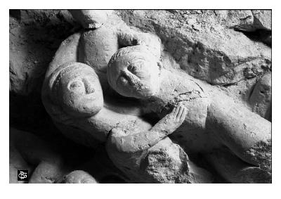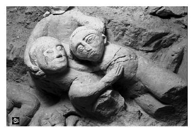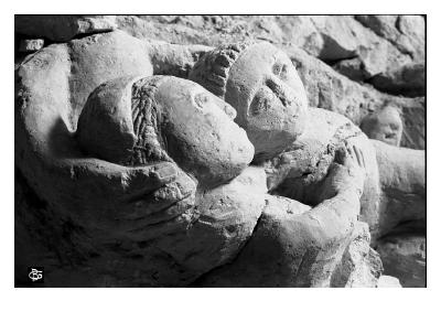le trio//A2 et A3 n'ont pas de visage- A3 n'a pas de tête du tout /en cours de dégagement; on voit que les gravats (et le mur ?) sont encore présents à droite dans le prolongement du bloc A