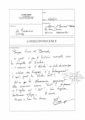 lettre à A et B FAUCOU en accompagnement d'une histoire de la chapelle Saint Nicolas + un courrier de lévêchée du 15/05/1997 + 1 citation Fraysse ; ces documents ne sont pas joints - 3 photos dans la …