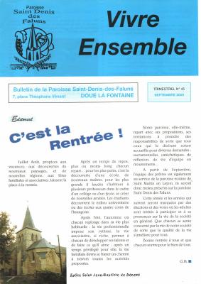 n°45 du bulletin paroissial "vivre ensemble" de St Denis les faluns - une photo de l'église saint Jean-Baptiste de Dénezé en page 1 et de brève description en page 6.