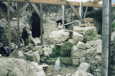 excavation en cours- au moins 2 niveaux de murs en petit appareil irrégulier