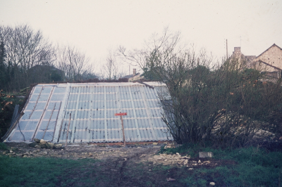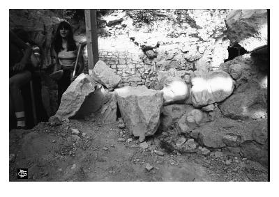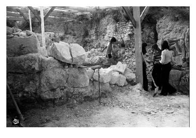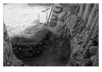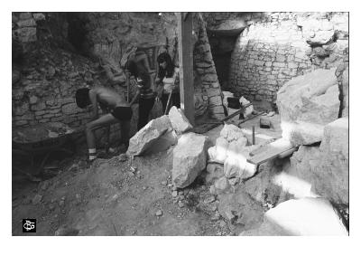 fouilles en cours - 4 fouilleurs - murs de cloisement avec une ouverture