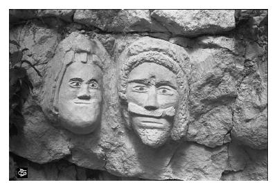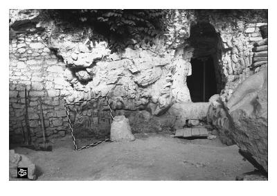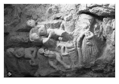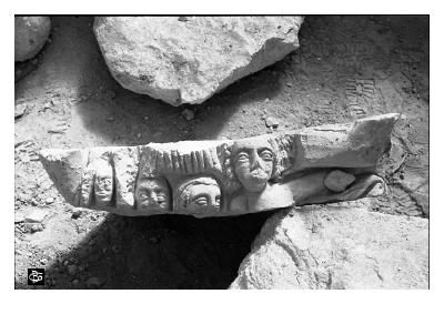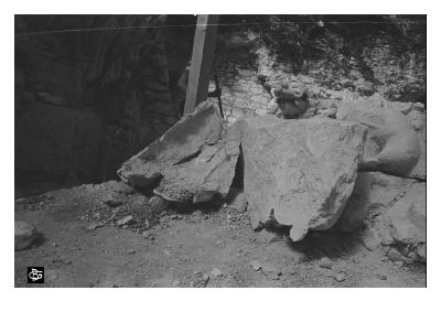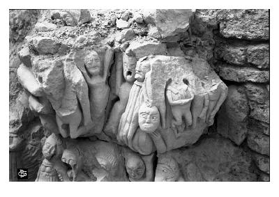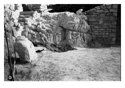 panneaux F et D en cours de dégagement partiellement pris dans des murs en petit appareil - F171 sans tête -