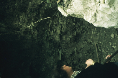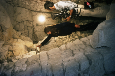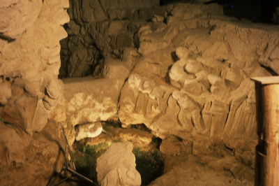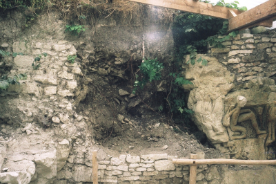 un éboulement en cours de dégagement - des silhouettes de sculptures non identifées