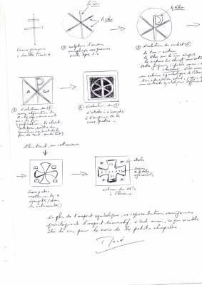 différents dessins de croix et commentaires sur le clocheton de la chapelle