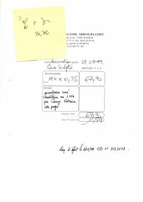facture pour la photovopie de l'inventaire du curé Chastelain en 1774 par Carrys Notaire 194 pages