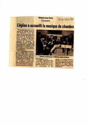 Courrier de l'Ouest 7/7/1997 : musique d ans l'église + 30/06/1997 lacher de faisans