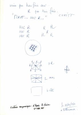 texte manuscrit et schémas avec "3R" + "écriture maçonnnique d'après A. Héron 04 nov 1997" - Christ - Hoc