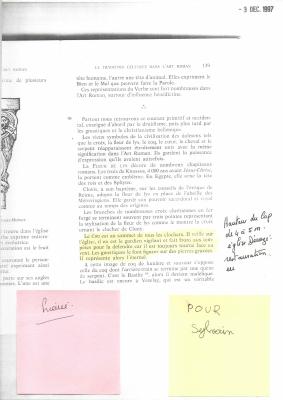 photocopie de la page 139 d'un ouvrage (ou d'un chapitre ?) intitulé "la tradition celtique dans l'art roman" à propos du coq sur les clochers des églises