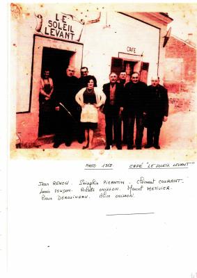 devant le café "le soleil levant"- Jean RENOU/Séraphin PICANTIN/Clément COURANT/Louis SUDON/Arlette ONILLON/ Marcel METIVIER/ Pierre DEROUINEAU/ Alice ONILLON