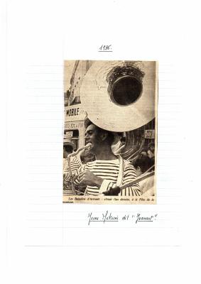 photo de Jean Méivier jouant du tuba géant pour la fête de la musique - journal non identifié